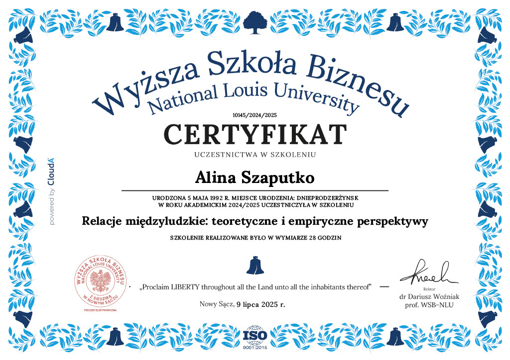 На данный момент я заканчиваю 5 курс психологии в польском ВУЗе и 5 года нахожусь в личной терапии.