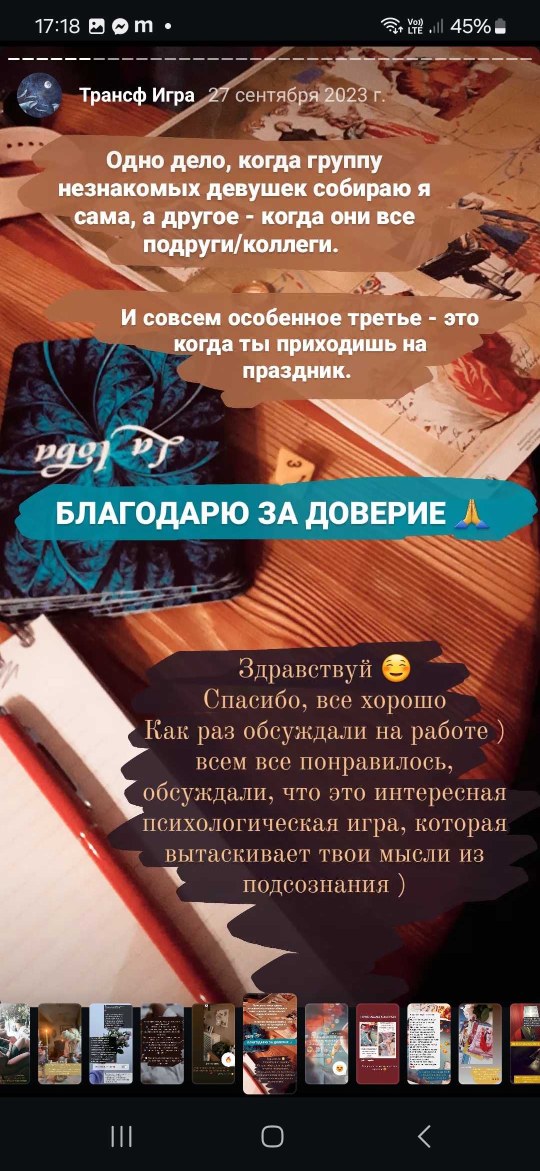 Также свою трансформационную игру я могу провести для компании твоих подруг/коллег/знакомых на День рождения, корпоратив или просто на девчачьи посиделки.